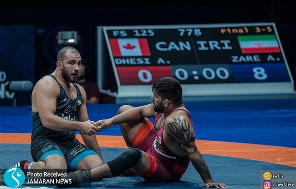 در وزن ۹۷ کیلوگرم ، مجتبی گلیج دارنده مدال برنز جهان ۲۰۲۱ مقابل سرگئی کوزیرف از روسیه ۴ بر ۳ شکست خورد و در وزن ۱۲۵ کیلوگرم، امیرحسین زارع دارنده مدال های طلای جهان و برنز المپیک با نتیجه ۱۰ بر ۴ مقابل لخاگواگرل مونختور از مغولستان به برتری رسید.