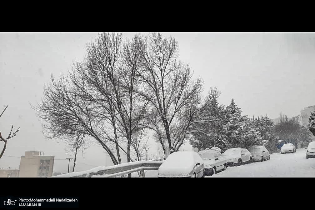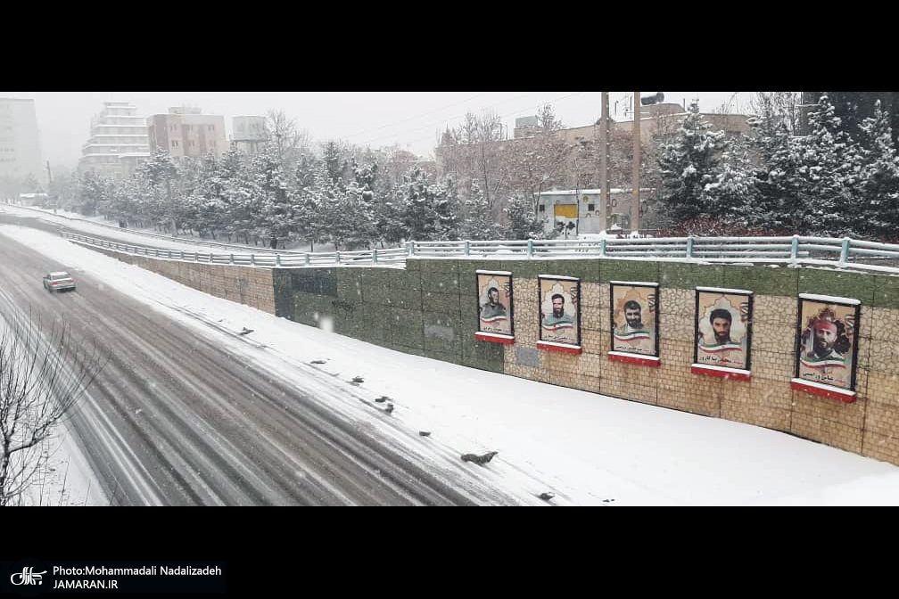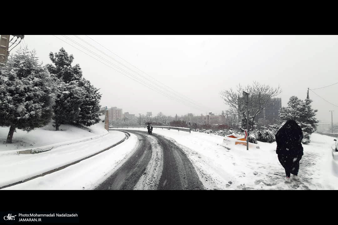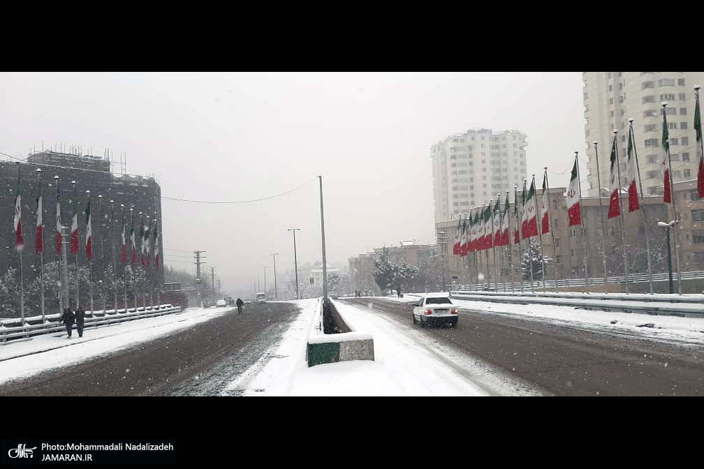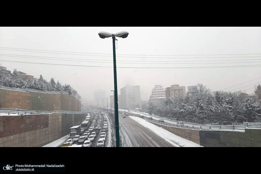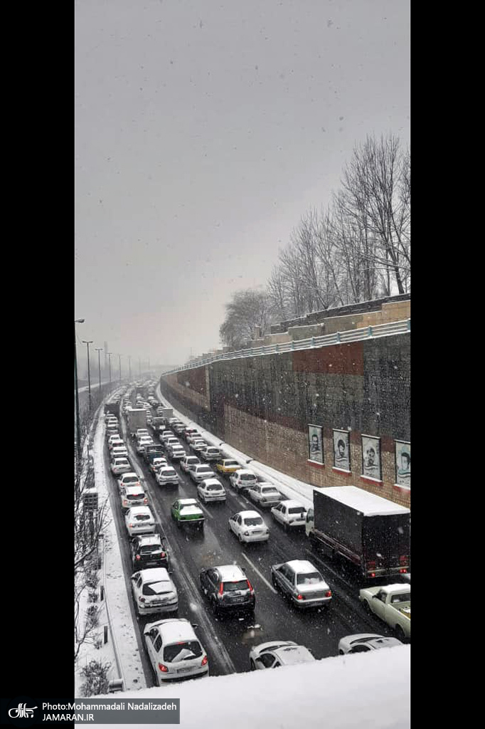 بارش برف امروز در تهران - قفل شدن بزرگراه یادگار امام شمال به جنوب