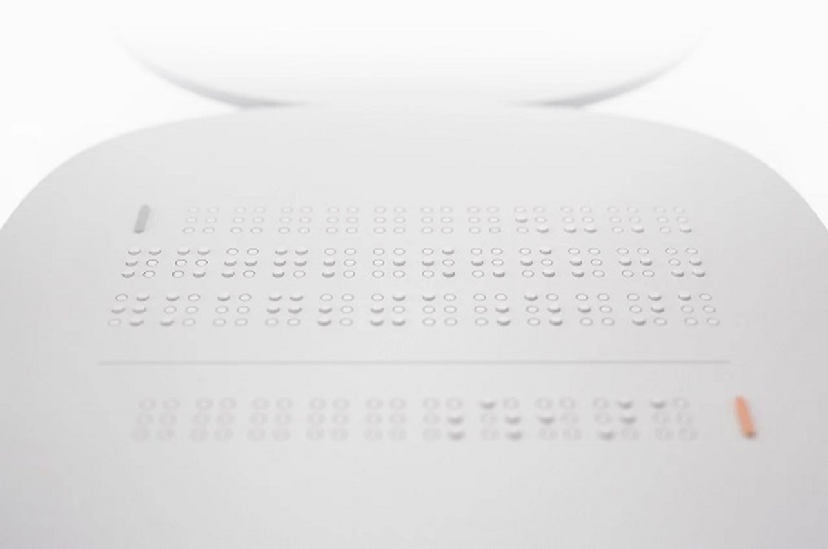 این ایده ممکن است ساده به نظر برسد، اما اجرای آن کاملاً شیک است. دستگاه TEXT.ure به صورت یک دستگاه مربع با گوشههای گرد و سطوح صاف است و به دو قسمت باز میشود و مکانیسم بریل را در داخل آشکار میکند. این شکل ما را به یاد شکل کلی نوت بوکها میاندازد یا حداقل اینکه افراد نابینا چگونه میتوانند آنها را با نوک انگشتان خود لمس کنند.