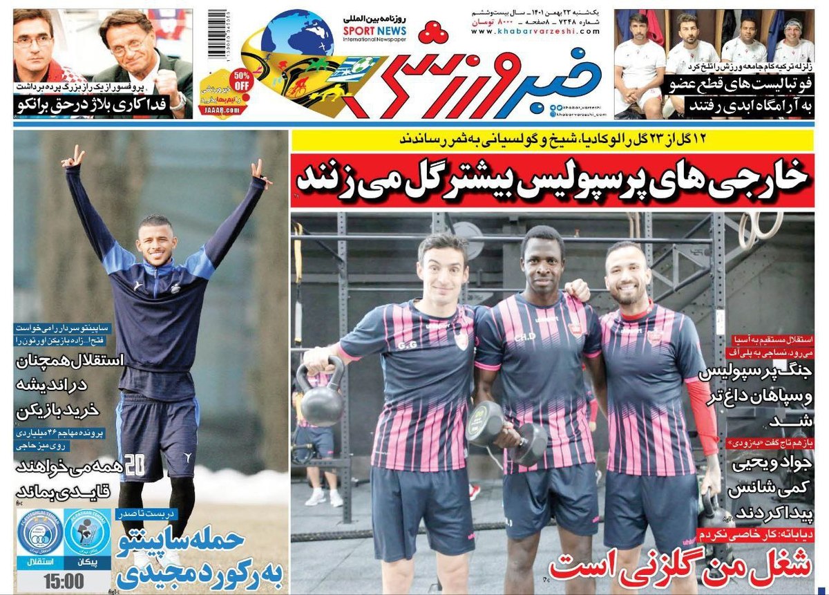 کدخبر: ۱۵۸۴۶۷۰ تاریخ انتشار: ۱۴۰۱/۱۱/۲۳ ۰۹:۱۰:۰۸ روزنامه های ورزشی یکشنبه ۲۳ بهمن ۱۴۰۱ در این خبر می توانید صفحه اول روزنامههای ورزشی یکشنبه ۲۳ بهمن ۱۴۰۱ را مشاهده کنید. مشاهده خبر در جماران اخبار مرتبط روزنامه های ورزشی سه شنبه ۱۱ بهمن ۱۴۰۱ روزنامه های ورزشی یکشنبه ۹ بهمن ۱۴۰۱ روزنامه های ورزشی سه شنبه ۴ بهمن ۱۴۰۱ روزنامه های ورزشی سه شنبه ۲۷ دی ۱۴۰۱ روزنامه های ورزشی سه شنبه ۲۰ دی ۱۴۰۱ لینک کوتاه: کلمات کلیدی روزنامه های ورزشی