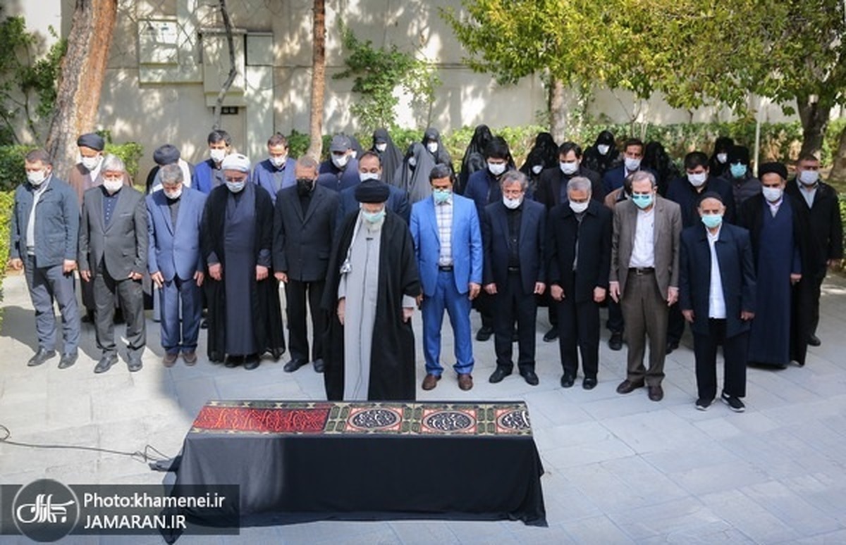 اقامه نماز رهبر انقلاب بر پیکر همسر شهید آیتالله مطهری
