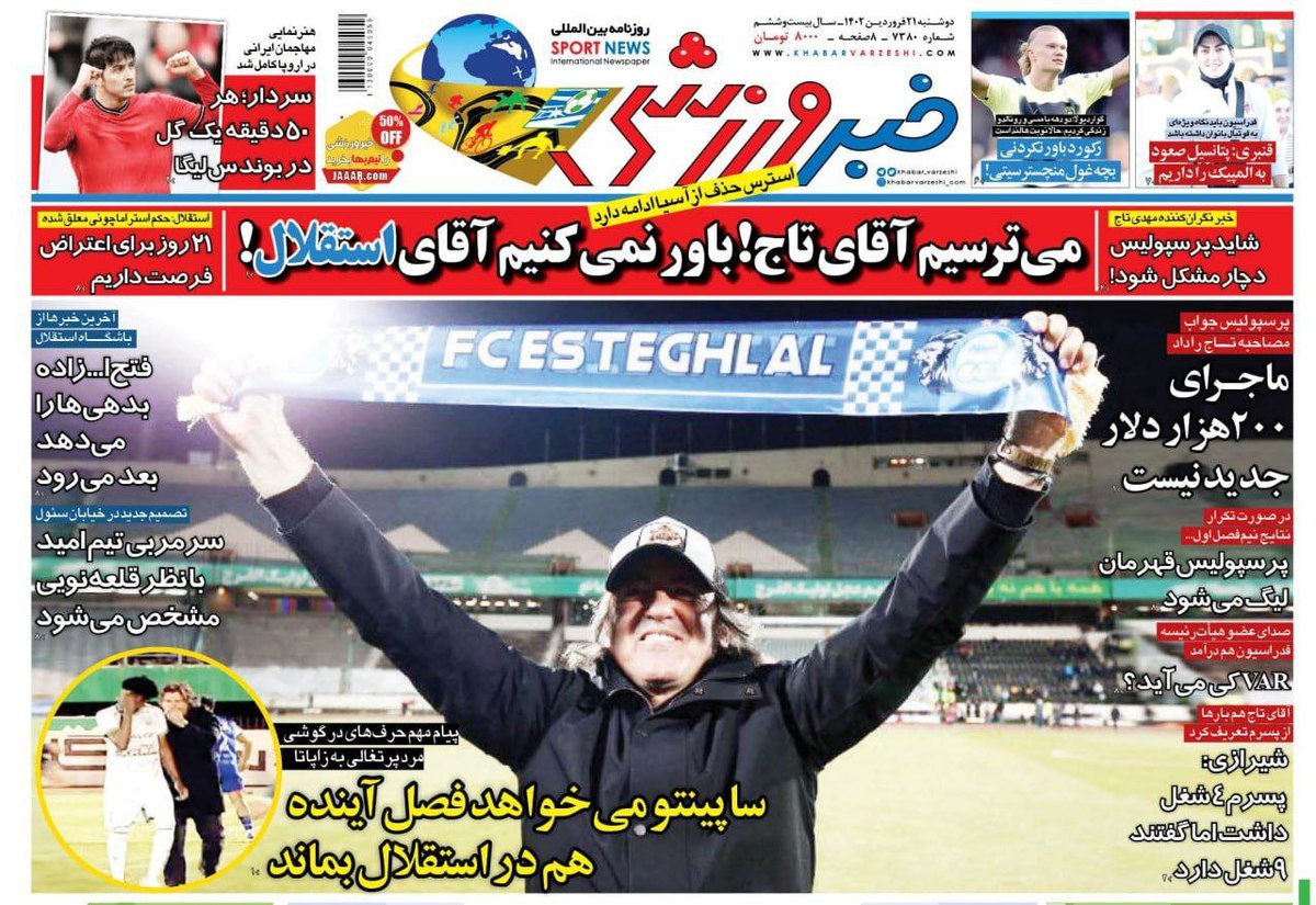 کدخبر: ۱۵۹۰۸۷۰ تاریخ انتشار: ۱۴۰۲/۰۱/۲۱ ۱۰:۳۳:۲۹ روزنامه های ورزشی دوشنبه ۲۱ فروردین ۱۴۰۲ نیم صفحه اول روزنامه های ورزشی دوشنبه ۲۱ فروردین ۱۴۰۲ را در ادامه می خوانید. مشاهده خبر در جماران اخبار مرتبط گزیده روزنامه های 21 فروردین 1402 گزیده روزنامه های 20 فروردین 1402 روزنامه های ورزشی یکشنبه 20 فروردین 1402 روزنامههای ورزشی شنبه 19 فروردین 1402 روزنامههای ورزشی پنجشنبه 16 فروردین 1402 روزنامه های ورزشی 4 شنبه 16 فروردین 1402 روزنامه های ورزشی سه شنبه ۱۵ فروردین ۱۴۰۲ لینک کوتاه: کلمات کلیدی روزنامه های ورزشی