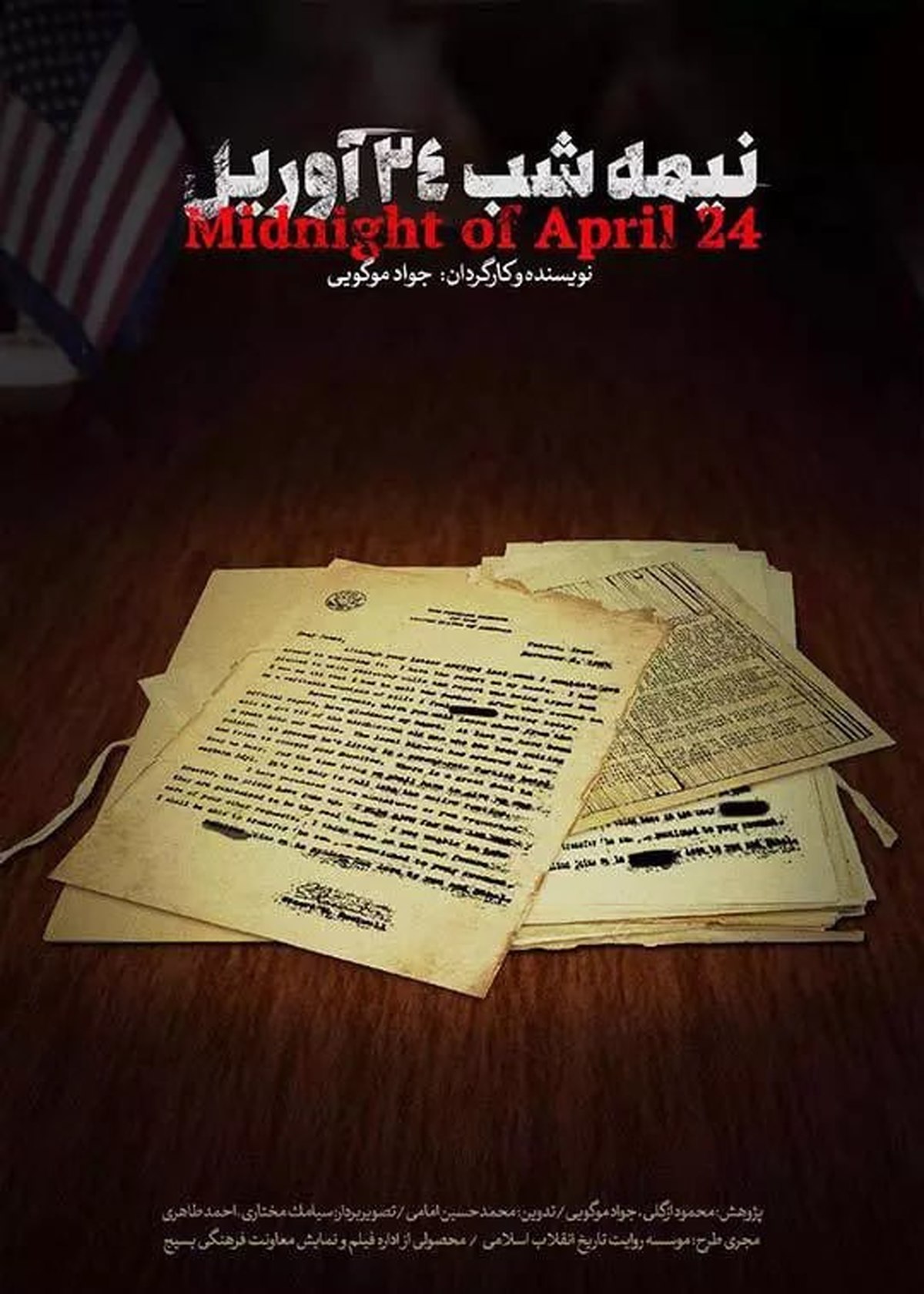 مستند «نیمه شب ۲۴ آوریل» ساخته جواد موگویی، روایت تسخیر لانۀ جاسوسیِ آمریکا در تهران و ورود نیروهای آمریکایی به «طبس» برای نجات جاسوسها سه شنبه ۵ اردیبهشت ساعت ۲۱ از شبکه مستند پخش می شود.
