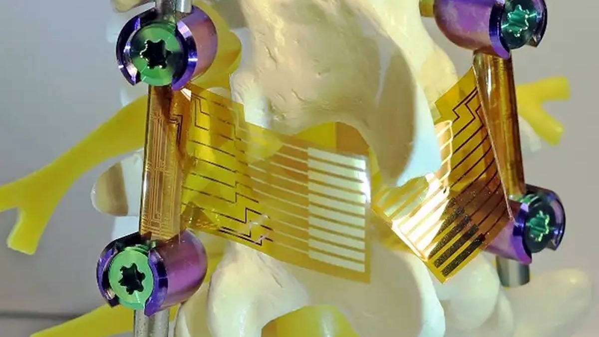 در قسمت پشتی فویل نانوساختار، جایی که با دستگاه ایمپلنت تماس پیدا میکند، محققان مجموعههایی از حسگرهای الکترونیکی بسیار حساس و انعطافپذیر را ادغام کردند.