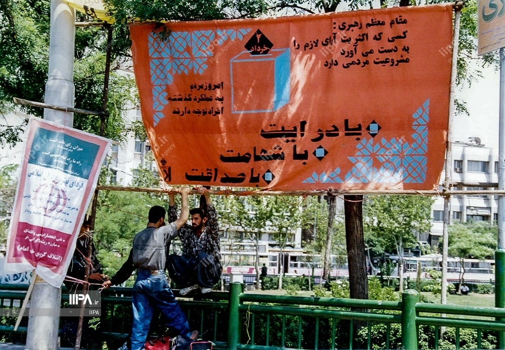 عکسهایی تازه منتشر شده از تبلیغات انتخاباتی هفتمین دوره انتخابات ریاست جمهوری سال ۷۶