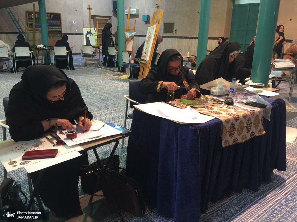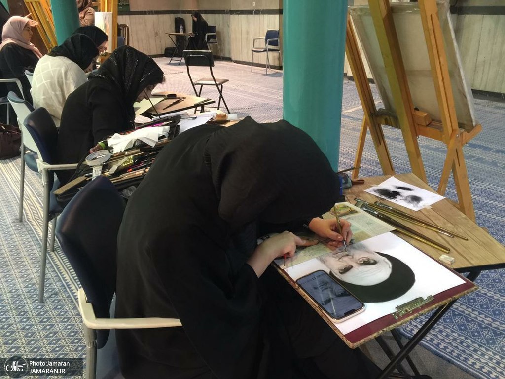 رویداد تجسمی «نقش آفتاب» به مناسبت سی و چهارمین سالگرد رحلت ملکوتی امام خمینی (ره) در رشته های خوشنویسی، نقاشی و پوستر روز جمعه ۵ خردادماه با حضور بانوان هنرمند تهرانی در حسینیه جماران برگزار شد.