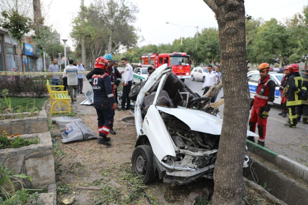 ۲ کشته در اثر برخورد پراید با یک درخت در مشهد + تصاویر