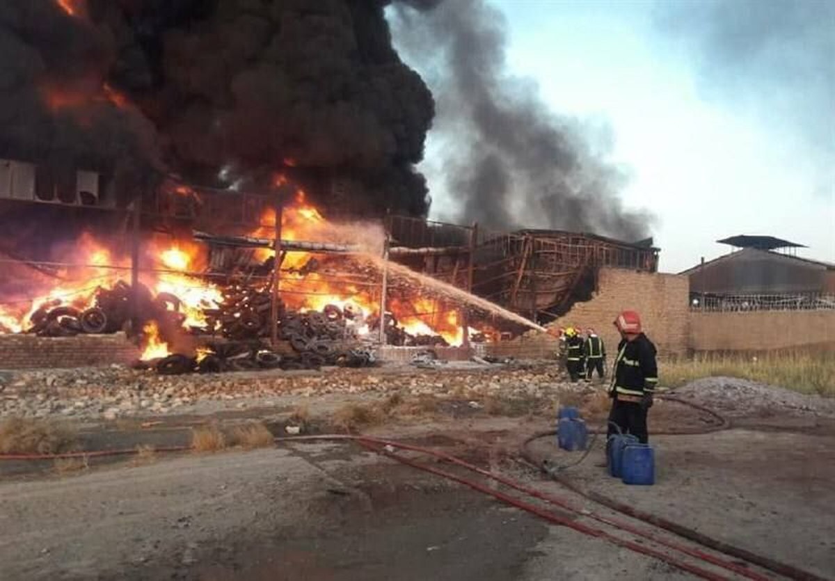 متأسفانه به علت اشتعالزا بودن لاستیکهای دپو شده حجم آتش بسیار گسترده است و اطفا حریق با آتش و دود غلیظ همراه است و این کمی کار را سختتر میکند.