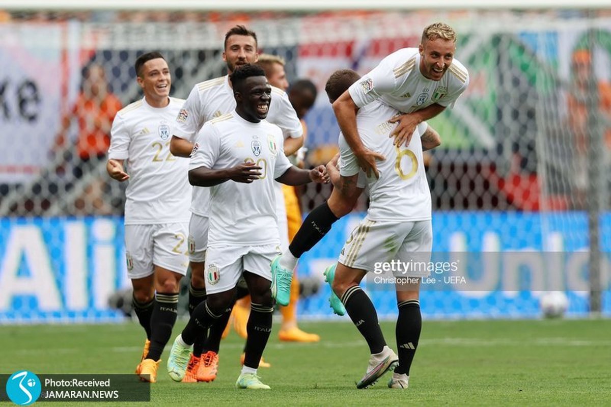 سومی ایتالیا در لیگ ملت های اروپا؛ میزبان چهارم شد+ عکس و ویدیوی گل ها
