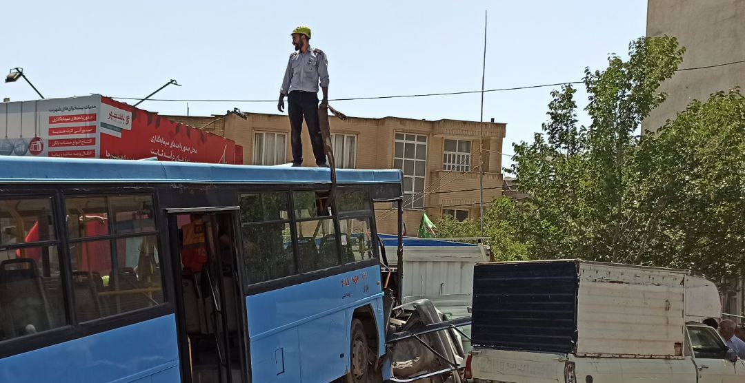 جی پلاس؛ صالح نیا، مدیر سازمان آتش نشانی تبریز گفت: به دنبال برخورد شدید اتوبوس با سه دستگاه خودرو پراید، شاسی بلند و وانت پیکان در بازارچه سیلاب تیمهای عملیاتی به محل حادثه اعزام و با رعایت اصول ایمنی و اجرای عملیات امدادی افراد محبوس در داخل خودروها را به بیرون منتقل و در اختیار عوامل اورژانس قرار دادند.