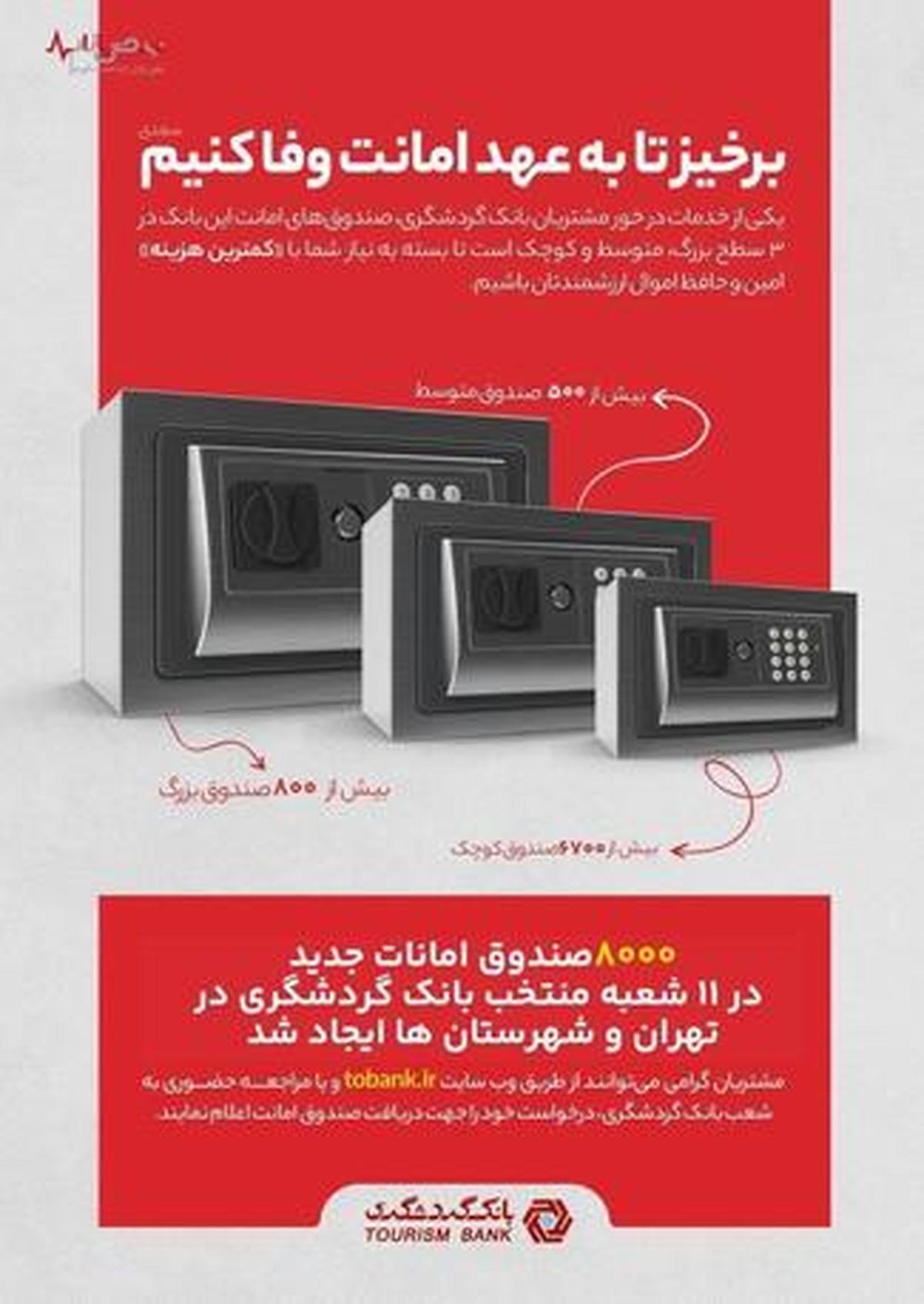 ۸ هزار صندوق امانات جدید در شعب منتخب بانک گردشگری ایجاد شد