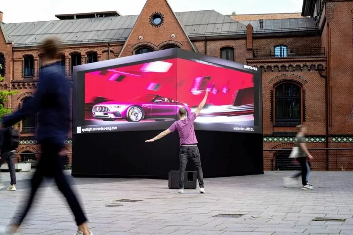 بیلبورد جالب مرسدس AMG، به رودستر جذاب SL تعلق دارد. این بیلبورد در واقع بخشی از کمپین Step into the Spotlight محسوب میشود و ساختار آن از LED است. در این بیلبورد نسخهای دیجیتال از مرسدس SL در اندازه واقعی و در طرحهای مختلف به عابرین نمایش داده میشود.