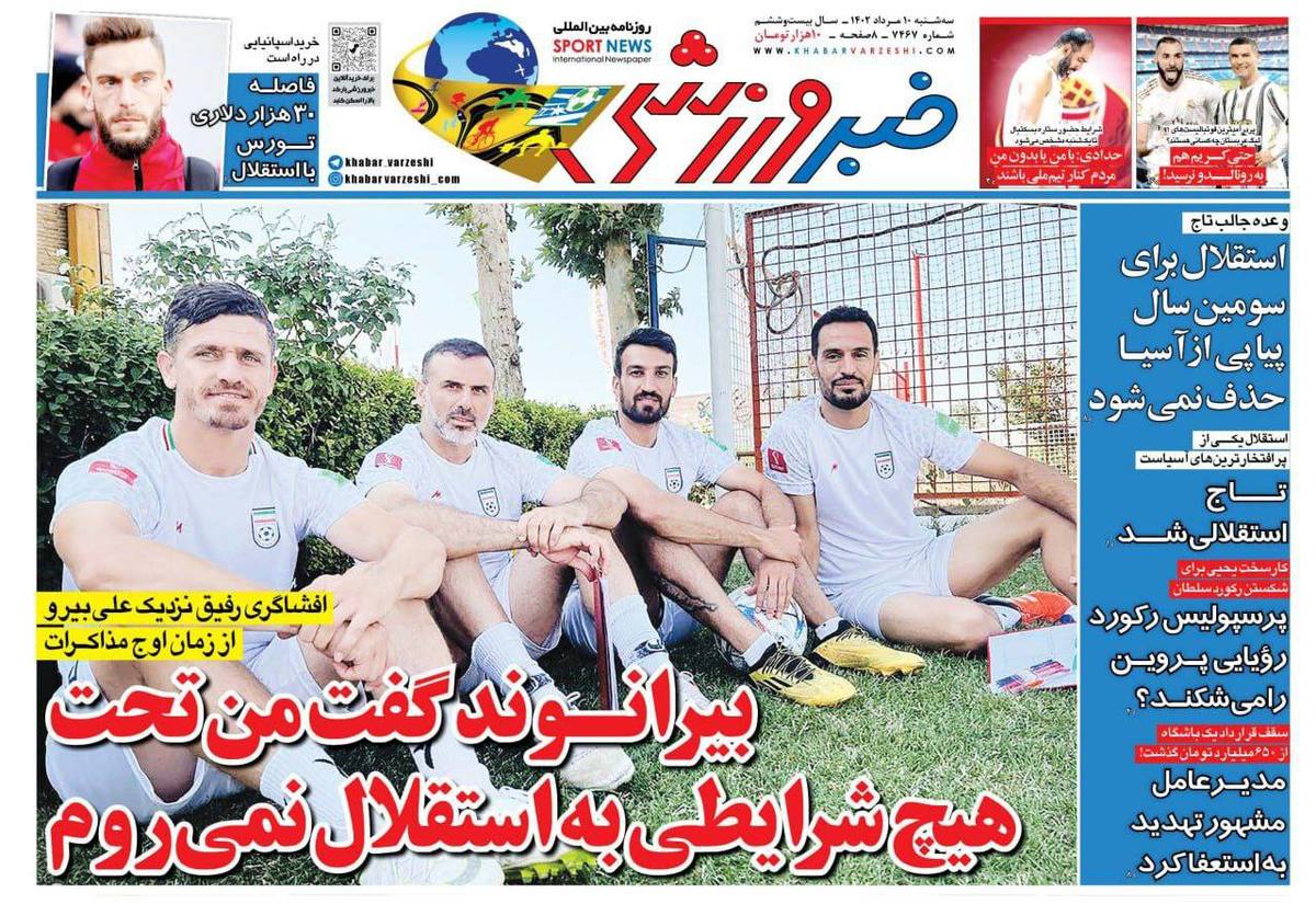 کدخبر: ۱۶۰۲۶۳۲ تاریخ انتشار: ۱۴۰۲/۰۵/۱۰ ۱۰:۱۱:۵۵ روزنامه های ورزشی سه شنبه ۱۰ مرداد ۱۴۰۲ در این خبر می توانید روزنامه های ورزشی سه شنبه ۱۰ مرداد ۱۴۰۲ را مشاهده کنید. مشاهده خبر در جماران اخبار مرتبط گزیده روزنامه های 10 مرداد 1402 روزنامههای ورزشی دوشنبه ۹ مرداد ۱۴۰۲ گزیده روزنامه های 9 مرداد 1402 لینک کوتاه: کلمات کلیدی روزنامه روزنامه های ورزشی روزنامه های ورزشی سه شنبه ۱۰ مرداد ۱۴۰۲