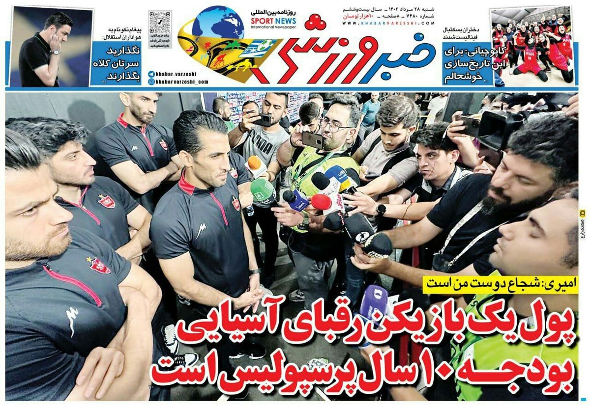 کدخبر: ۱۶۰۴۵۷۴ تاریخ انتشار: ۱۴۰۲/۰۵/۲۸ ۱۰:۱۳:۲۷ روزنامه های ورزشی شنبه ۲۸ مرداد ۱۴۰۲ در این خبر می توانید روزنامه های ورزشی شنبه ۲۸ مرداد ۱۴۰۲ را مشاهده کنید. مشاهده خبر در جماران اخبار مرتبط گزیده روزنامه های 28 مرداد 1402 لینک کوتاه: کلمات کلیدی روزنامه روزنامه های ورزشی روزنامه های ورزشی شنبه ۲۸ مرداد ۱۴۰۲