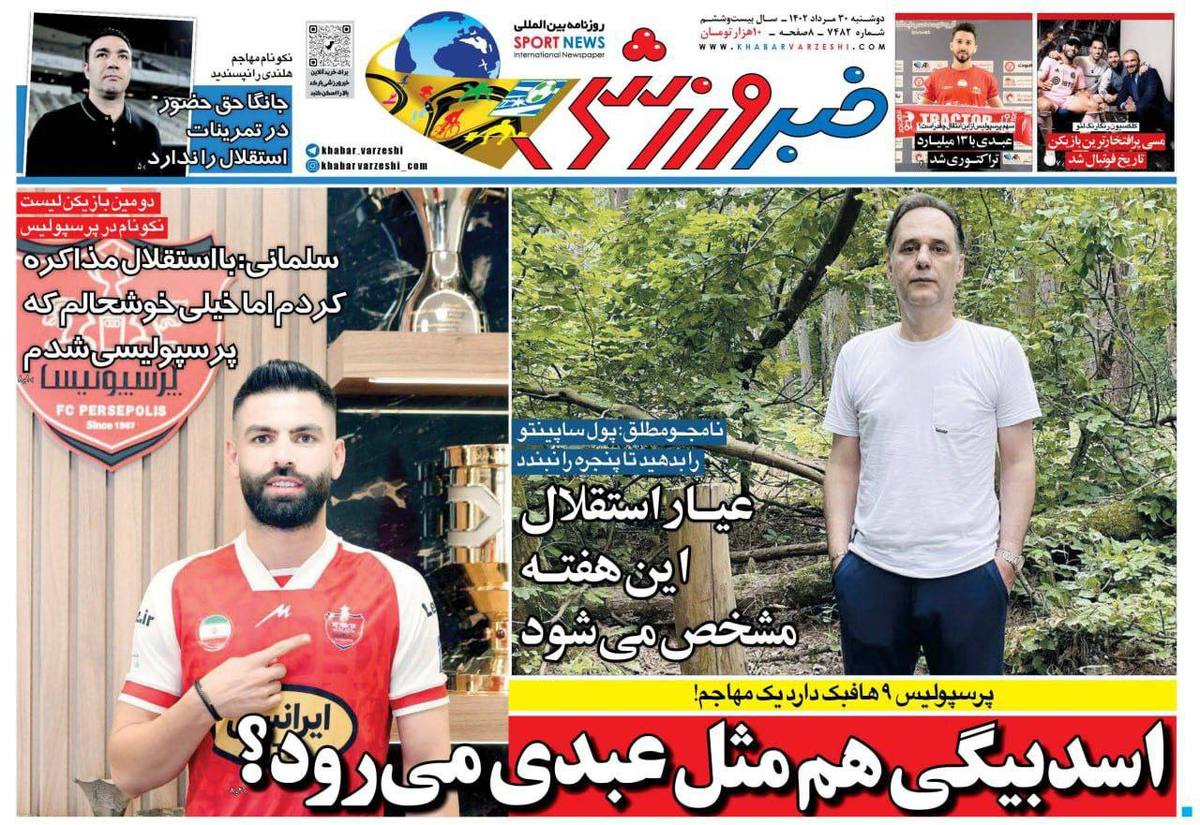 کدخبر: ۱۶۰۴۸۵۴ تاریخ انتشار: ۱۴۰۲/۰۵/۳۰ ۱۰:۲۰:۴۲ روزنامه های ورزشی دوشنبه ۳۰ مرداد ۱۴۰۲ در این خبر می توانید روزنامه های ورزشی دوشنبه ۳۰ مرداد ۱۴۰۲ را مشاهده کنید. مشاهده خبر در جماران اخبار مرتبط گزیده روزنامه های 30 مرداد 1402 گزیده روزنامه های 29 مرداد 1402 روزنامه های ورزشی یکشنبه 29 مرداد 1402 لینک کوتاه: کلمات کلیدی روزنامه روزنامه های ورزشی روزنامه های ورزشی دوشنبه ۳۰ مرداد ۱۴۰۲