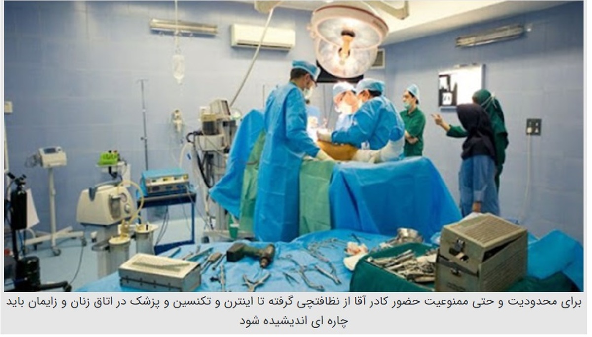 برای محدودیت و حتی ممنوعیت حضور کادر آقا از نظافتچی گرفته تا اینترن و تکنسین و پزشک در اتاق زنان و زایمان باید چاره ای اندیشیده شود