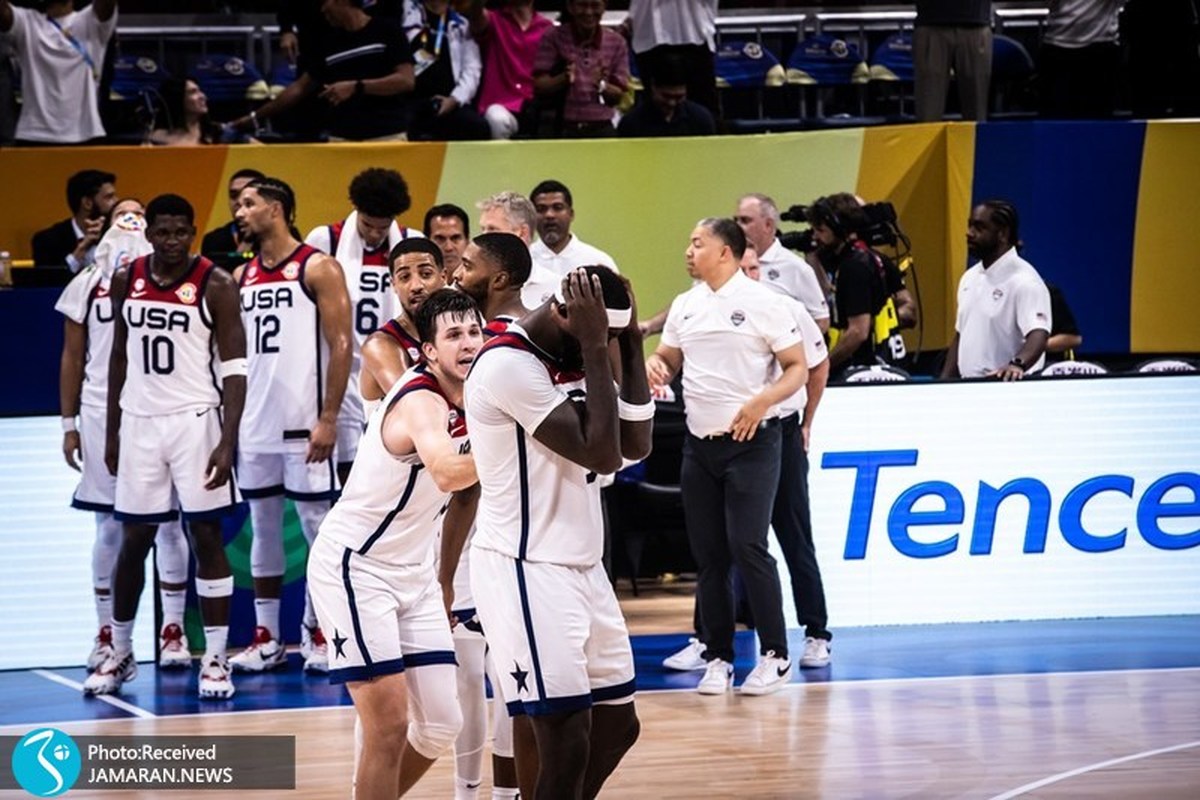 بازی در وقت قانونی با تساوی ۱۱۱ بر ۱۱۱ به پایان رسید؛ این در حالی بود که آمریکا تا ثانیه پایانی ۳ امتیاز از حریف عقب بود و شوت ۳ امتیازی میکال بریجز، بازی را به تساوی کشاند.