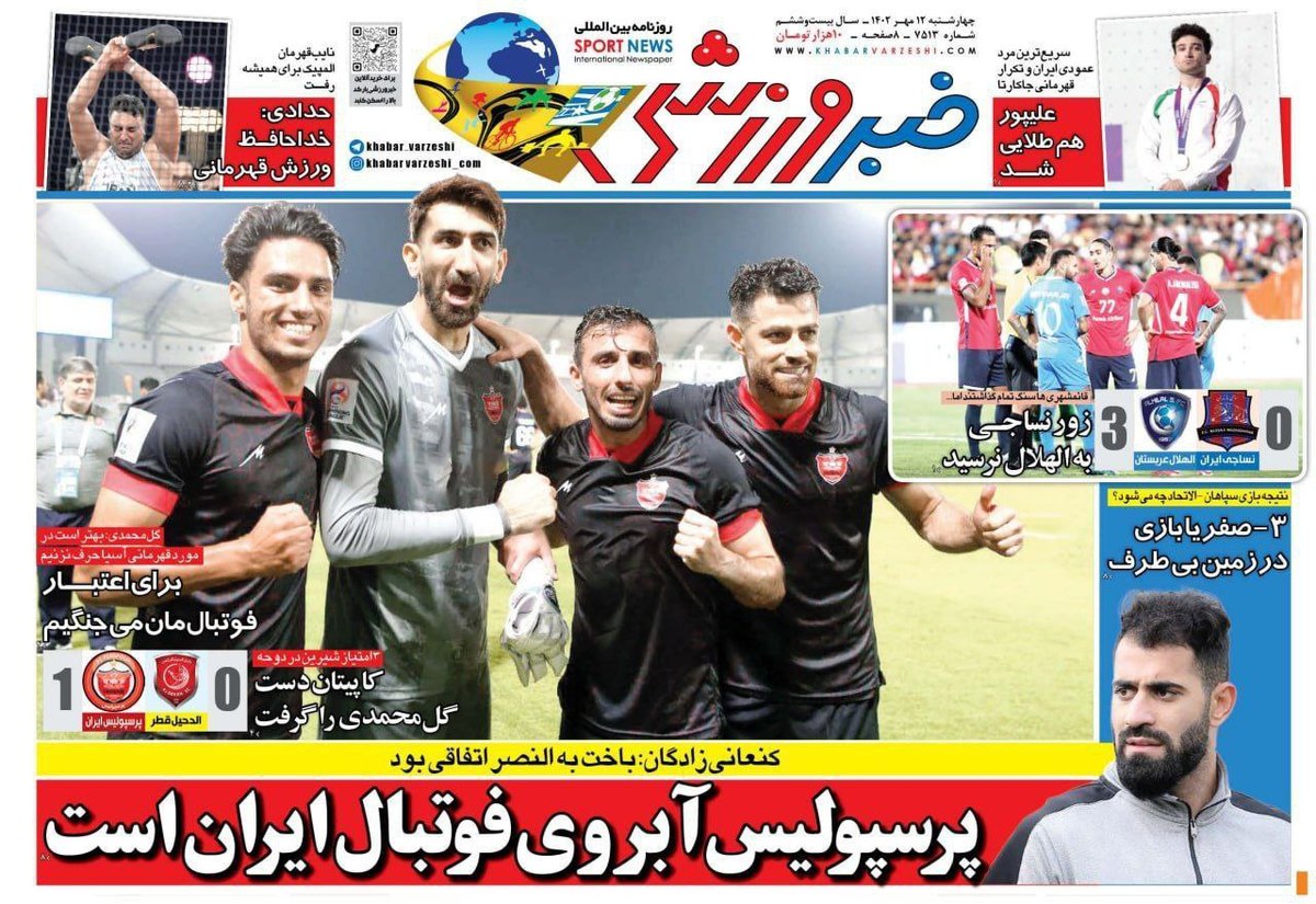 کدخبر: ۱۶۰۹۸۵۵ تاریخ انتشار: ۱۴۰۲/۰۷/۱۲ ۰۹:۰۰:۰۸ روزنامه های ورزشی چهارشنبه ۱۲ مهر ۱۴۰۲ در این خبر می توانید صفحه اول روزنامه های ورزشی چهارشنبه ۱۲ مهر ۱۴۰۲ را مشاهده کنید. مشاهده خبر در جماران اخبار مرتبط روزنامه های ورزشی یکشنبه 9 مهر 1402 روزنامه های ورزشی پنجشنبه ۶ مهر ۱۴۰۲ روزنامه های ورزشی چهارشنبه ۵ مهر ۱۴۰۲ روزنامه های ورزشی دوشنبه ۳ مهر ۱۴۰۲ روزنامه های ورزشی پنج شنبه ۳۰ شهریور ۱۴۰۲ لینک کوتاه: کلمات کلیدی روزنامه های ورزشی