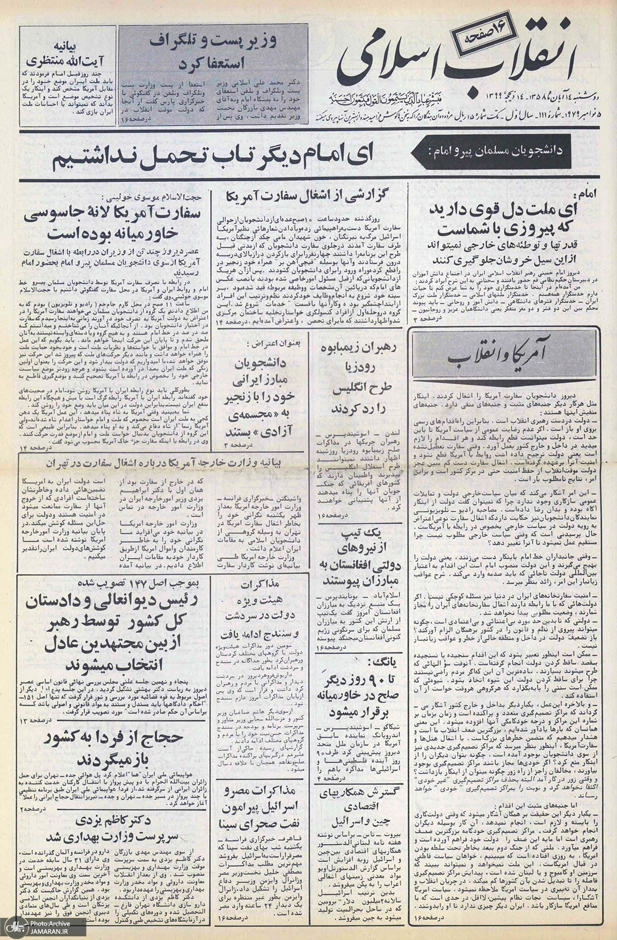 یکشنبه ۱۳۵۸/۰۸/۲۰، سال اوّل، شماره ۱۳٤، صفحه ٨