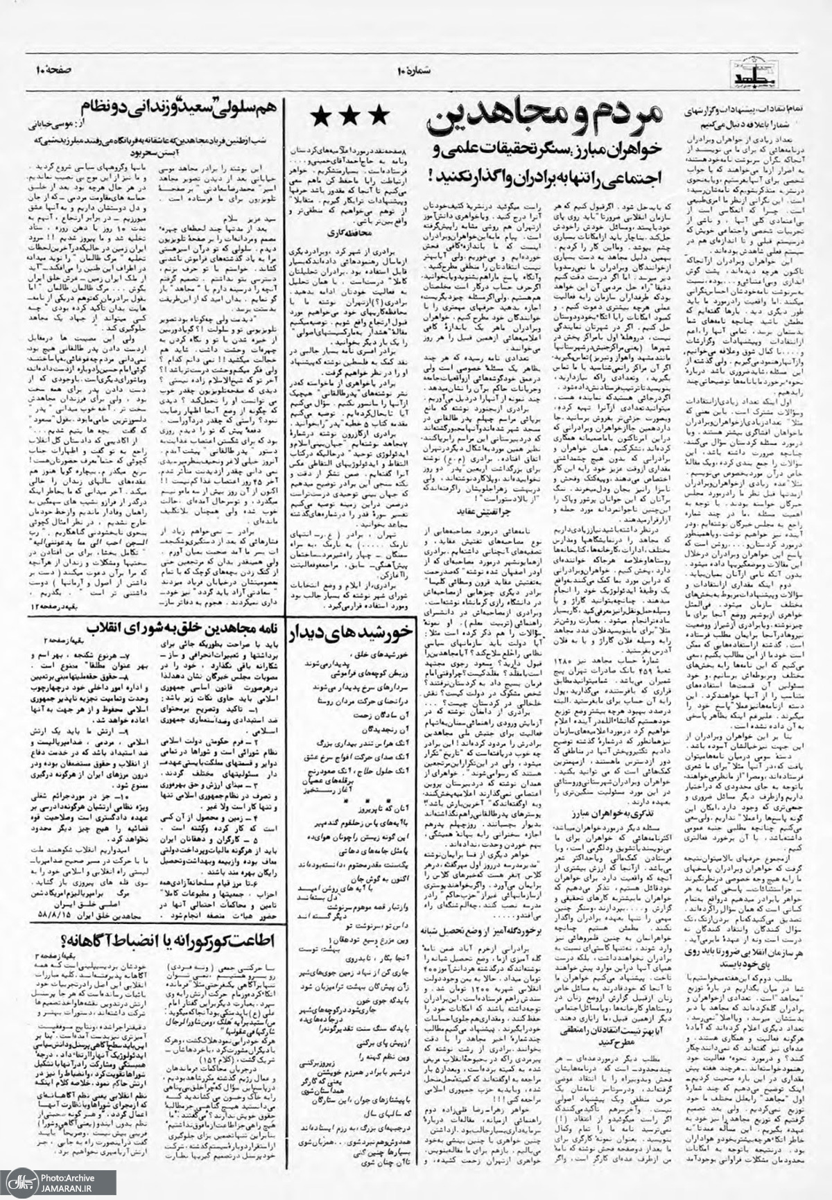 دوشنبه ۱۳۵۸/۰۸/۲۱، سال اوّل، شماره ۱۰، صفحه ۲ و ۱۰