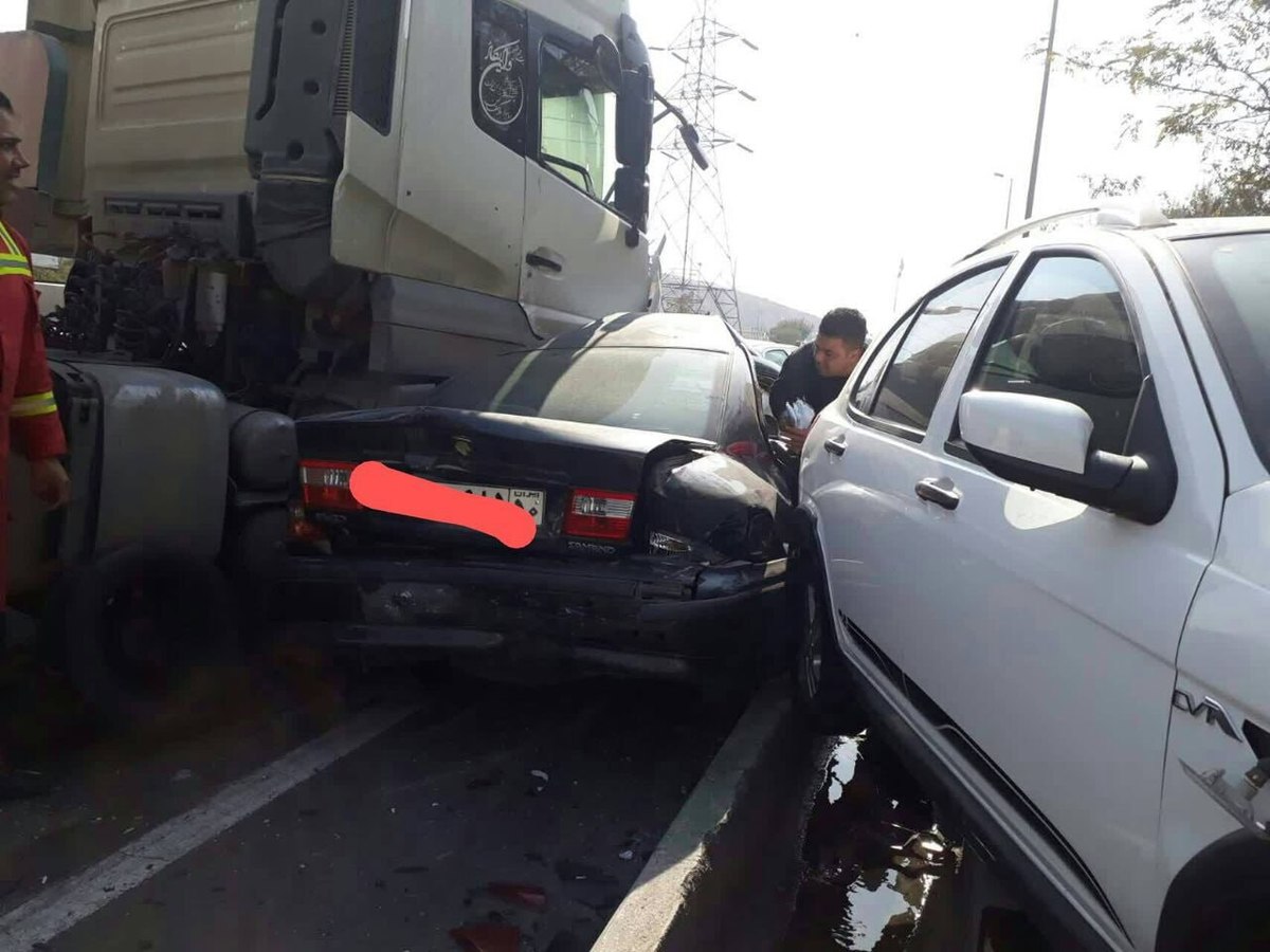 تصادف زنجیرهای ۱۳ خودرو در شرق تهران + عکس