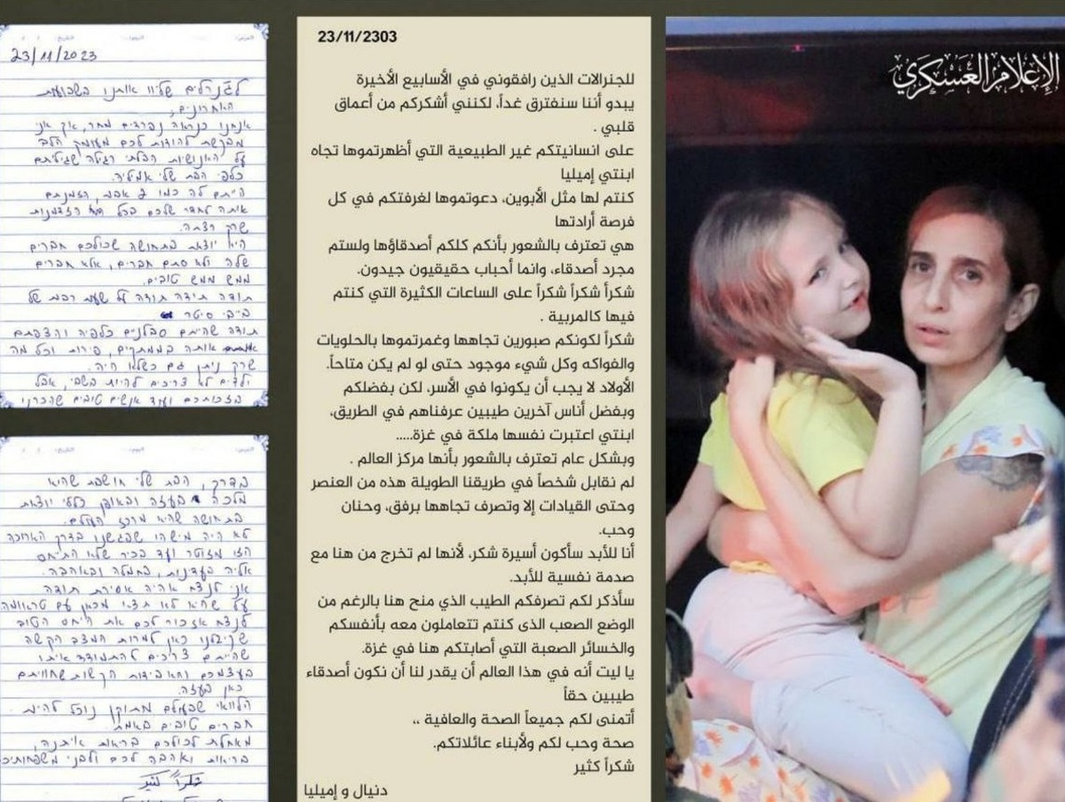 نامه تشکر و قدردانی اسیر اسرائیلی خطاب به مقاومت فلسطین: از صمیم قلب از شما تشکر میکنم. به خاطر این رفتار انسانی فراطبیعی که در حق من و دخترم از خود نشان دادید!