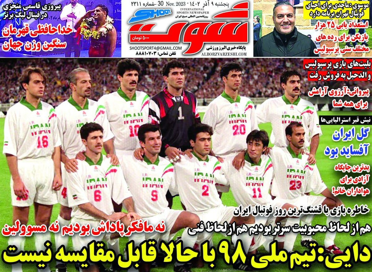 کدخبر: ۱۶۱۵۵۱۵ تاریخ انتشار: ۱۴۰۲/۰۹/۰۹ ۰۹:۱۳:۰۹ روزنامه های ورزشی پنج شنبه ۹ آذر ۱۴۰۲ صفحه نخست روزنامه های ورزشی در تاریخ پنج شنبه ۹ آذر را در این خبر مشاهده می کنید. مشاهده خبر در جماران اخبار مرتبط روزنامه های ورزشی چهارشنبه ۸ آذر ۱۴۰۲ روزنامه های ورزشی سه شنبه ۷ آذر ۱۴۰۲ روزنامه های ورزشی 2 شنبه 6 آذر 1402 روزنامه های ورزشی یکشنبه ۵ آذر ۱۴۰۲ روزنامه های ورزشی شنبه ۴ آذر ۱۴۰۲ روزنامه های ورزشی 5 شنبه 2 آذر 1402 لینک کوتاه: کلمات کلیدی روزنامه های ورزشی