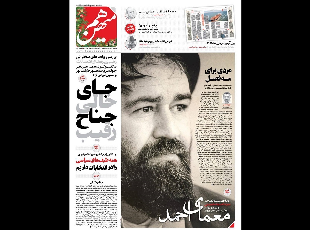 سیدحسن خمینی هم در عمل بیش از آنکه یادآور پدر باشد در سیما به داییِ دایی (امام موسی صدر) ماننده است و میکوشد یادآور «نیا» باشد و در پدر متوقف نبوده چندان که در شهریور 1401 و یک هفته قبل از ماجرای مهسا، احمد منتظری فرزند آیتالله منتظری در نشست «مبانی فقهی و کلامی آیتالله صانعی» پای سخنان فرزند سیدحسن خمینی نشست.