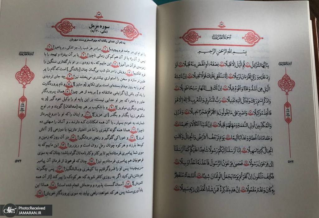 وی افزود : از ویژگیهای این ترجمه، پایبندی به زبان و ادبیات فارسی در عین حال وفادای به متن قرآن کریم است هر چند از افراط مخلِ به روانی فهم قرآن پرهیز شده است. این اصل در زمینههای دیگر ، بهعنوان نمونه اهنگین بودن نثر، رعایت شده است.