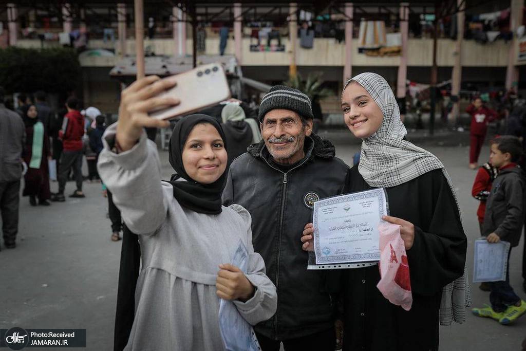 در یکی از پناهگاه های آوارگان فلسطینی در رفح غزه مراسمی برای ۴۰ کودک حافظ قرآن کریم برگزار شد. این کودکان از ابتدای جنگ غزه تا امروز موفق شدند بخش هایی از قرآن کریم حفظ کنند.