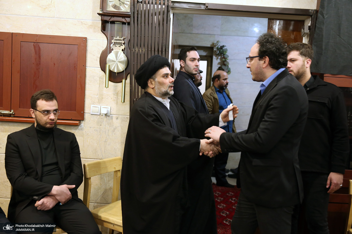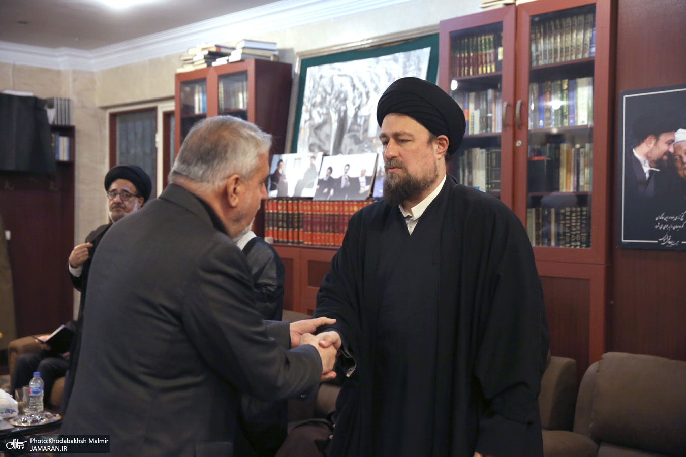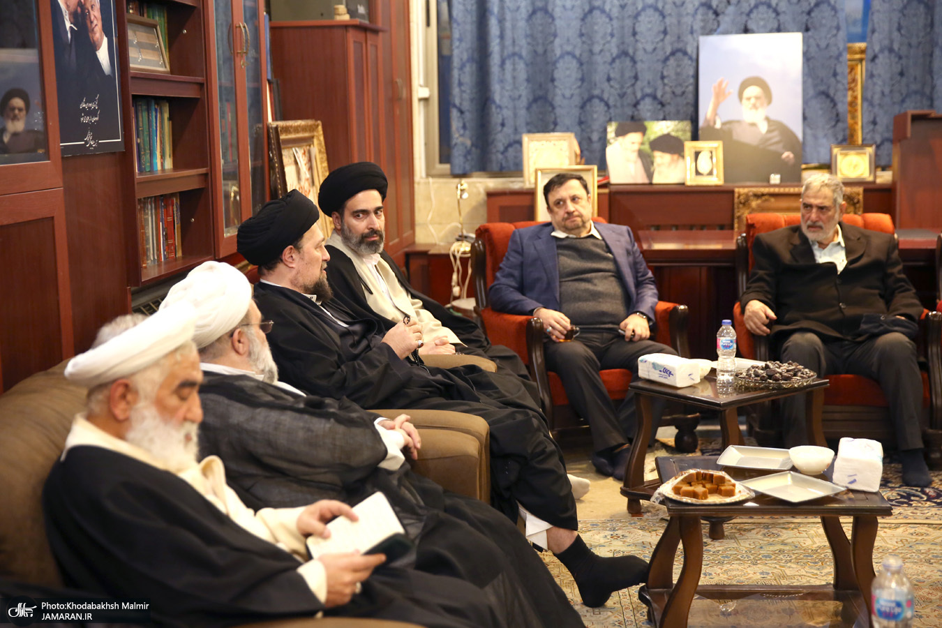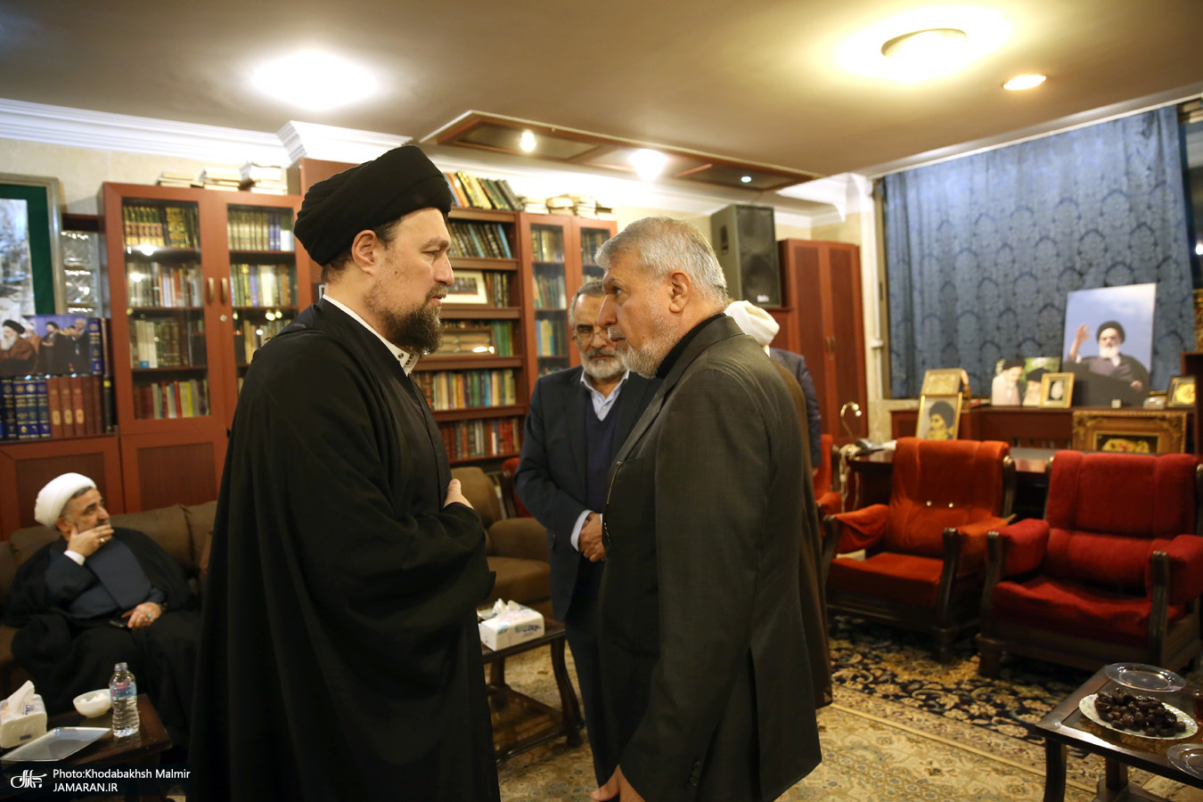 حضور جمعی از شخصیت های سیاسی در منزل مرحوم آیت الله موسوی بجنوردی (ره) -۱