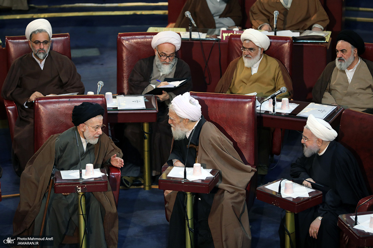 حجتالاسلام و المسلمین حسن روحانی ردیف اول در کنار آیتالله محمدعلی موحدی کرمانی نشسته بود و حجتالاسلام و المسلمین علوی، آیتالله نورمفیدی و محسن اسماعیلی هم در اجلاس امروز حاضر بودند تا شاید آخرین حضور خود در اجلاسهای خبرگان رهبری را تجربه کنند، اما آملی لاریجانی در این اجلاس هم غایب بود.