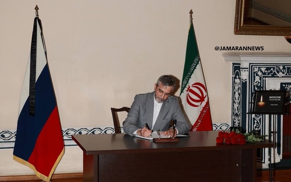 علی باقری کنی، معاون سیاسی وزارت امور خارجه جمهوری اسلامی ایران با حضور در سفارت روسیه در تهران ضمن ابراز همدردی ایران با ملت روسیه، حمایت ایران از روسیه، یادداشتی در دفتر یادبود قربانیان حمله تروریستی ۲۲ مارس در مسکو نوشت.