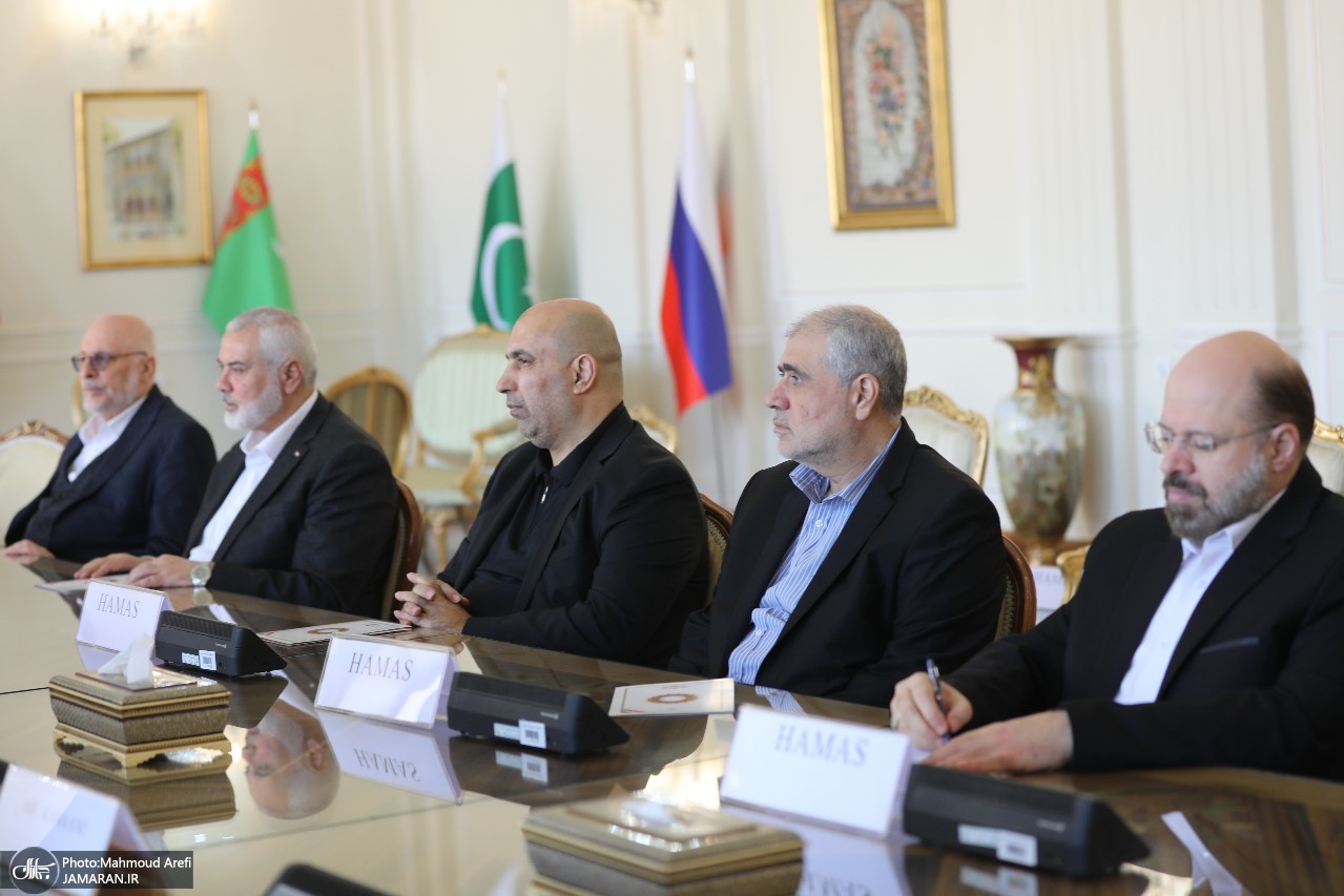 به گزارش جماران، امروز سه شنبه ۷ فروردین ۱۴۰۳، «اسماعیل هنیه» رئیس دفتر سیاسی و برخی اعضای برجسته سیاسی جنبش فلسطینی حماس، در سفر به تهران با «حسین امیرعبداللهیان»، وزیر امور خارجه جمهوری اسلامی ایران دیدار و گفتگو کرد.