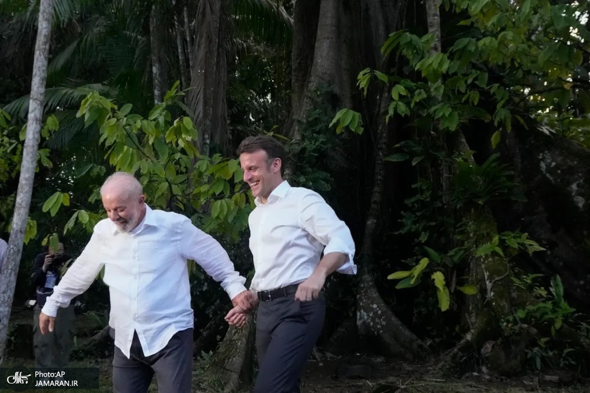 به گزارش جماران، اخیرا، حسابهای رسمی رسانههای اجتماعی لولا داسیلوا، رئیسجمهور برزیل و امانوئل ماکرون، رئیسجمهور فرانسه، تصاویری از این دو رهبر را در سفری به آمازون منتشر کردند. در یکی از عکسها، لولا و ماکرون دستهایشان را گرفته بودند، لبخند میزدند و به سمت کمان یک کشتی نگاه میکردند. در تصویر دیگری آنها از میان جنگل های بارانی عبور می کردند. به گزارش رسانه ها، امانوئل ماکرون، رئیس جمهوری فرانسه وارد شهر "بلم" برزیل شد تا با همتای برزیلی خود لوئیز ایناسیو لولا داسیلوا گفتگو کند. بلم در دهانه رودخانه آمازون در شمال ایالت پارا برزیل قرار دارد؛ این شهر قرار است میزبان اجلاس تغییرات اقلیمی در سال ۲۰۲۵ باشد.