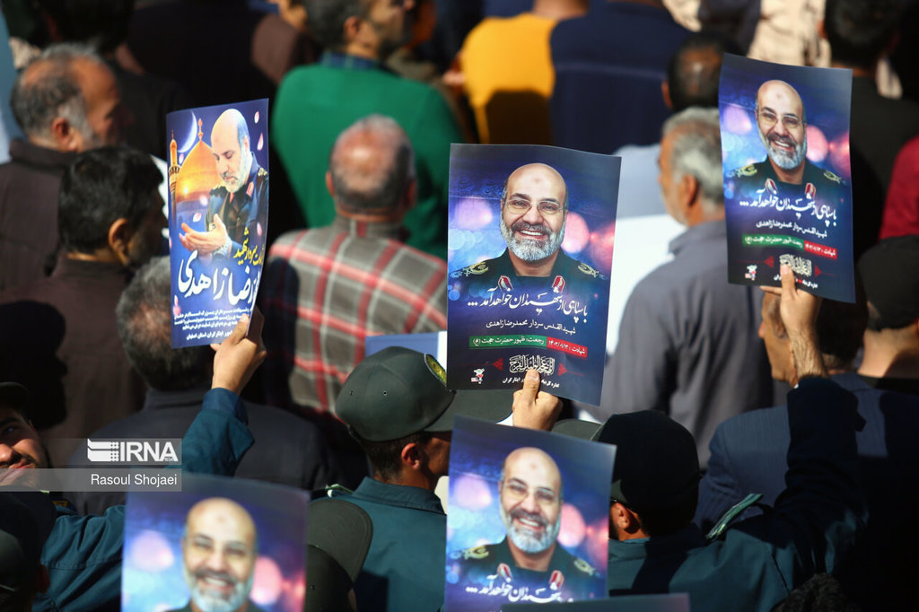 مراسم تشییع پیکر سردار شهید «محمدرضا زاهدی»، صبح شنبه (۱۸ فروردین ۱۴۰۲) با حضور مردم و مسوولان از میدان بزرگمهر به سمت گلستان شهدای اصفهان برگزار شد. سردار زاهدی و دیگر همرزمان او عصر دوشنبه ۱۳ فروردین در حمله رژیم صهیونیستی به سفارت ایران در دمشق به شهادت رسیدند.
