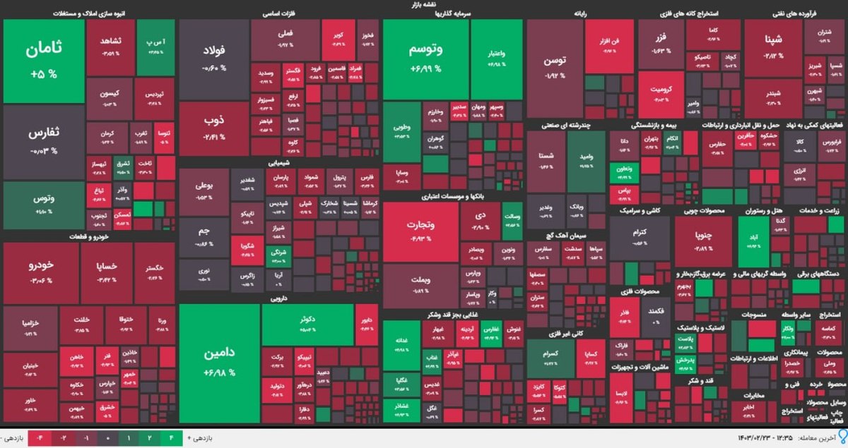 جی پلاس؛ یکشنبه ۲۳ اردیبهشت ماه؛ حدود ۸۷ درصد نمادها قرمز بودند.