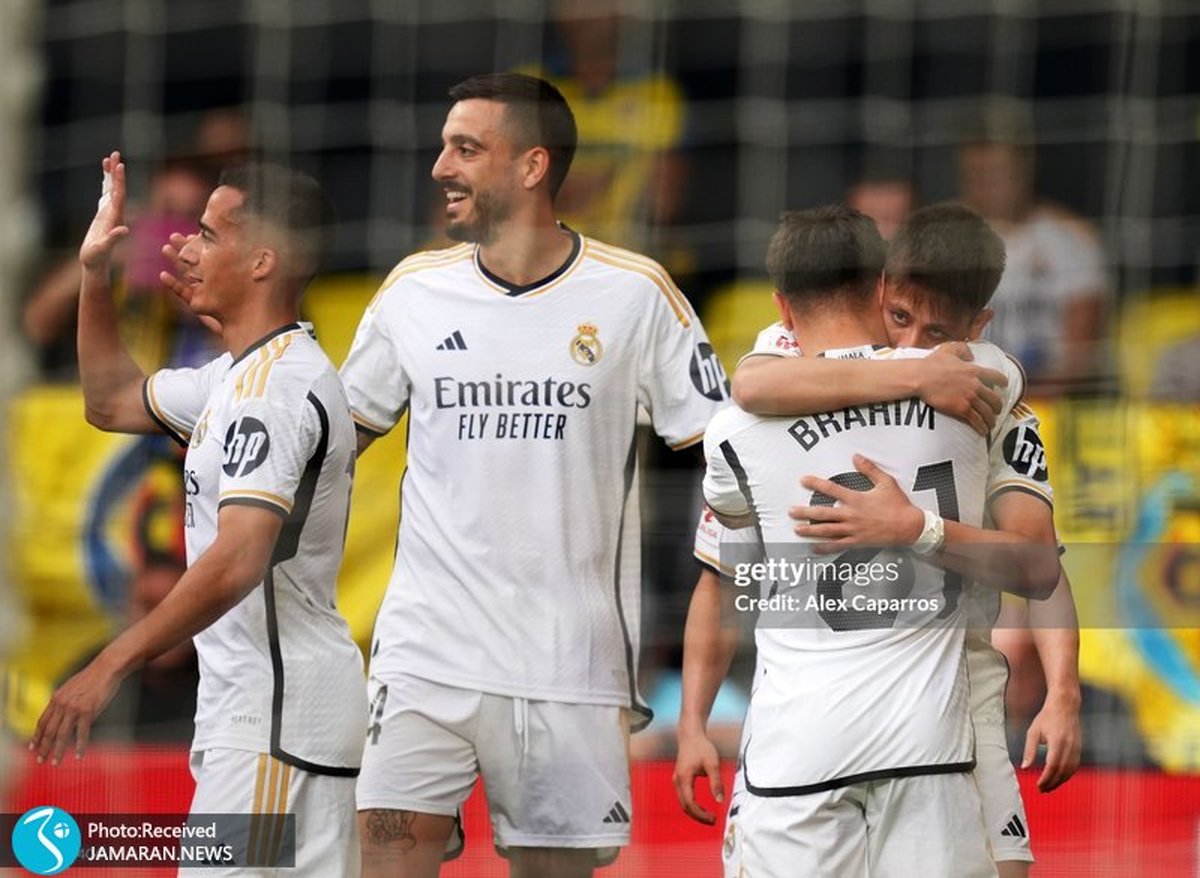 ورزشی جماران؛ ۹ دیدار باقی مانده از هفته سیوهفتم لالیگا، امروز (یکشنبه) به صورت همزان از ساعت ۲۰:۳۰ به وقت تهران برگزار شد که در مهمترین آنها رئال مادرید قهرمان زودهنگام رقابتها در خانه ویارئال به تساوی ۴-۴ بسنده کرد. آردا گولر دو بار در دقایق ۱۴ و ۲+۴۵، خوسلو ۳۰ و لوکاس واسکس ۴۰ برای رئال مادرید گلزنی کردند و در طرف مقابل هرچهار گل زیردریایی زرد توسط الکساندر سورلوث در دقایق ۳۹، ۴۸، ۵۲ و ۵۶ به ثمر رسید.
