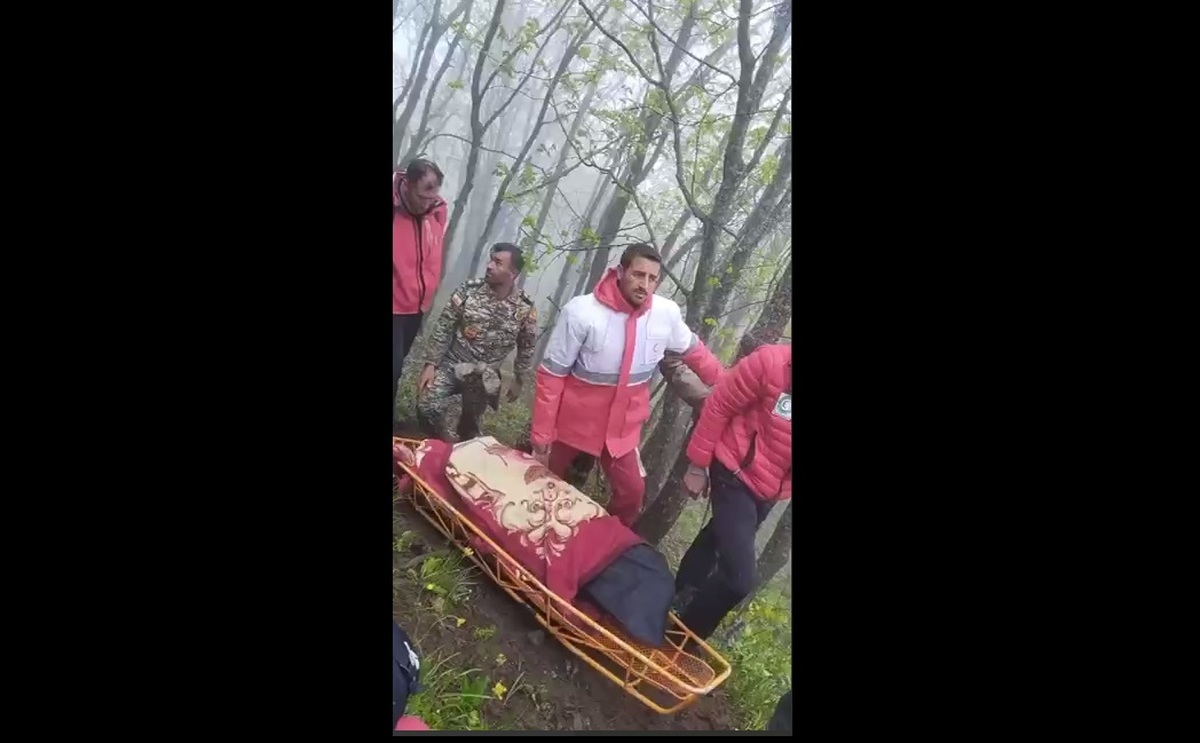 تصاویری از انتقال پیکر شهدای سانحه بالگرد رئیس جمهور توسط امدادگران هلال احمر و تکاوران نیروی زمینی ارتش به مناطق پایین دست