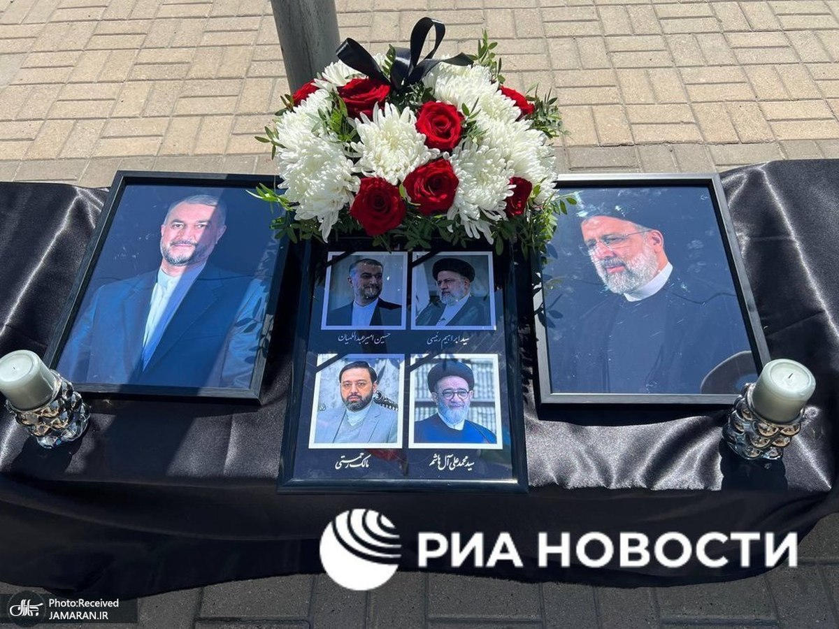یادبود سید ابراهیم رئیسی، رئیس جمهور ایران و حسین امیرعبداللهیان وزیر خارجه و هیئت همراه در نزدیکی ساختمان سرکنسولگری ایران در کازان. همچنین، رئیس جمهور تاتارستان صبح امروز درگذشت رئیس جمهور ایران را تسلیت گفت.
