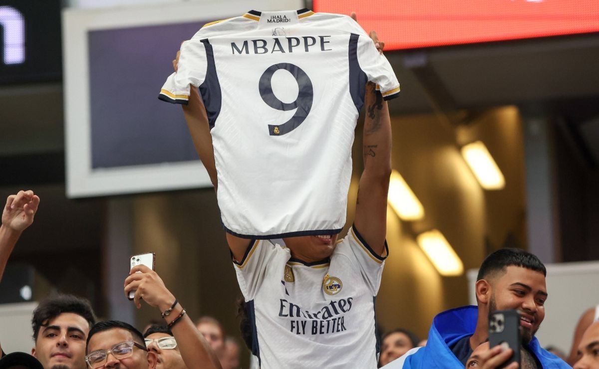 امباپه پیراهن شماره ۹ رئال مادرید را برتن می کند.