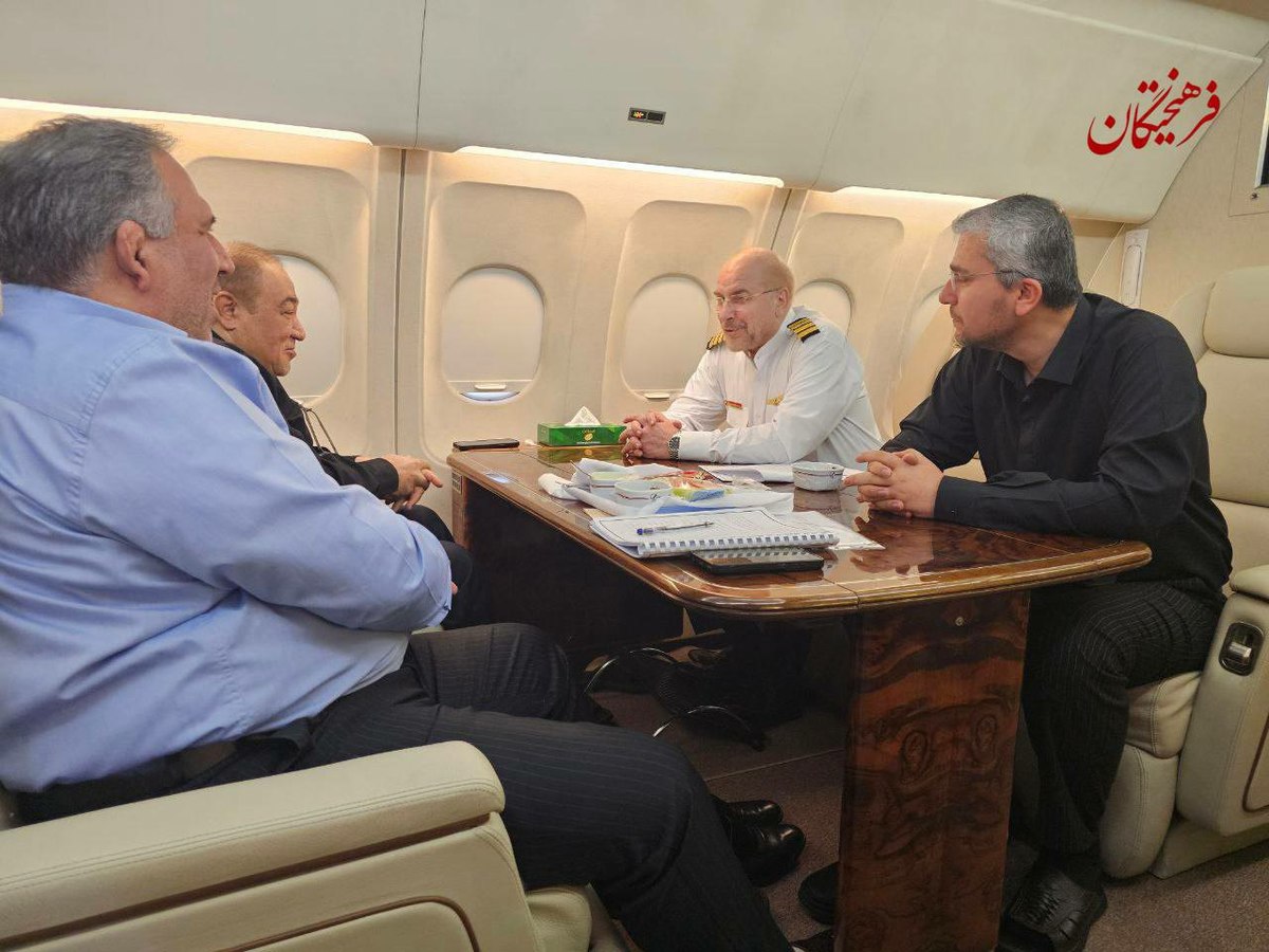 هدایت این پرواز را محمدباقر قالیباف بر عهده داشت. این تصویر متعلق به زمانی است که او دقایقی جهت گفتوگو با معاون اقتصادی وزیر امور خارجه و رئیس کمیسیون اقتصادی مجلس به کابین مسافران آمد./ فرهیختگان