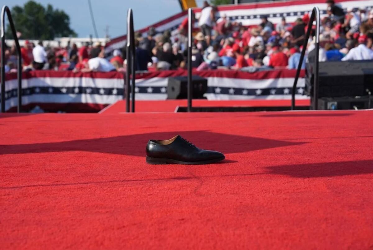 ترامپ در حالی که با عجله به سمت مکانی امن پس از هدف تیراندازی قرار گرفتن حرکت میکرد یک کفش خود را روی صحنه سخنرانی جا گذاشت. آن ۸۱ ثانیه بحران در مورد او و لحظه سیاسی ما حرفهای زیادی برای گفتن دارد.