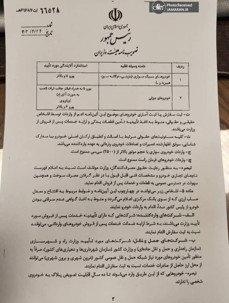 جی پلاس؛ اشخاص حقیقی میتوانند در چهارچوب این آیین نامه و ضوابط مربوط به افتتاح حساب و معدل حساب ارز که از سوی بانک مرکزی اعلام میگردد و منوط به اخذ گواهی عدم سرقتی بودن خودرو از پلیس کشور مبدا، اقدام به واردات خودرو نمایند.