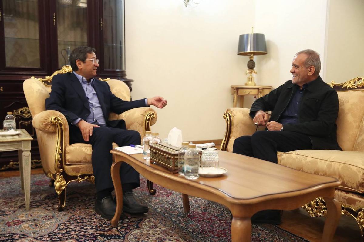 دیدار عبدالناصر همتی با رئیسجمهور منتخب/ انشاءالله با تدبیر دکتر پزشکیان شاهد تحولات مثبت در صحنه اقتصادی کشور باشیم