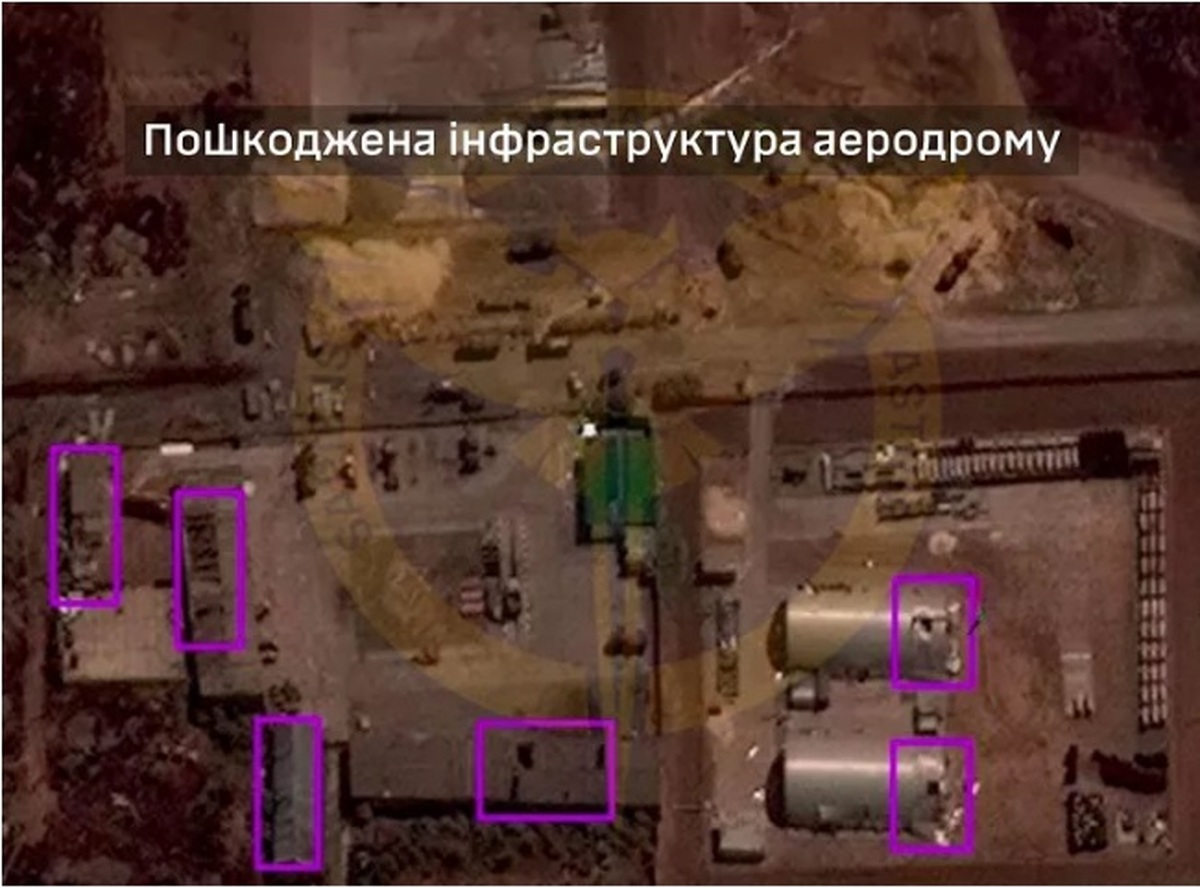 علاوه بر این، سازمان اطلاعات نظامی اوکراین اعلام کرد که زرادخانه هوانوردی روسیه را در حملات روز شنبه منهدم کرده است و انفجار ثانویه مهمات باعث ایجاد مناطق وسیعی از خاک سوخته روی پایگاه و اطراف آن شده است.