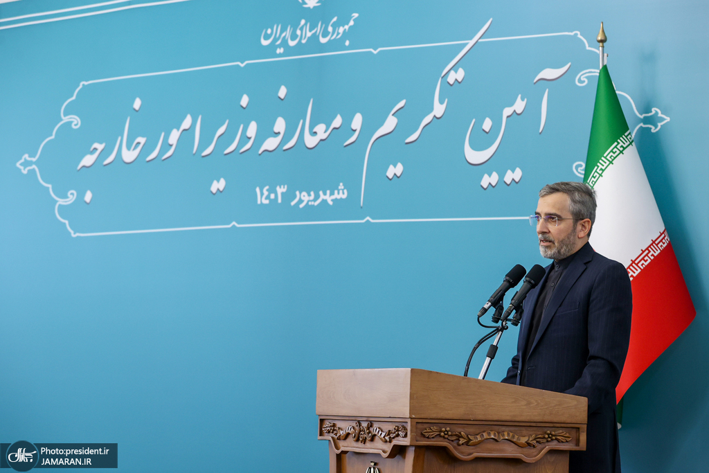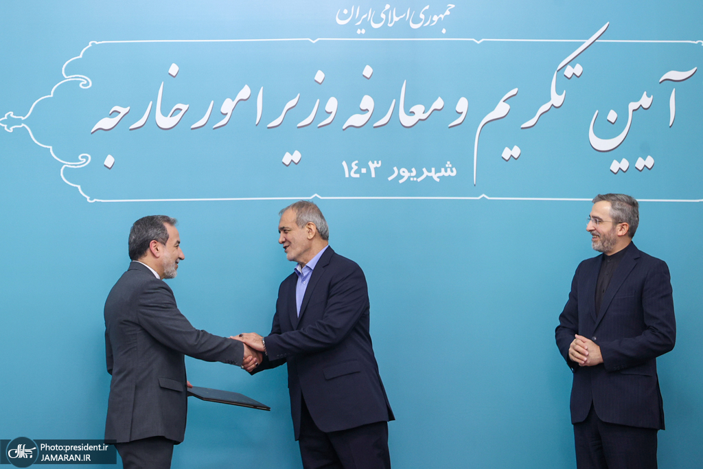 مراسم تکریم «علی باقری» سرپرست وزارت امورخارجه و معارفه «سید عباس عراقچی» بعنوان وزیر امور خارجه، عصر سه شنبه (۶ شهریور ۱۴۰۳) با حضور «مسعود پزشکیان» رئیس جمهور در وزارت خارجه برگزار شد.