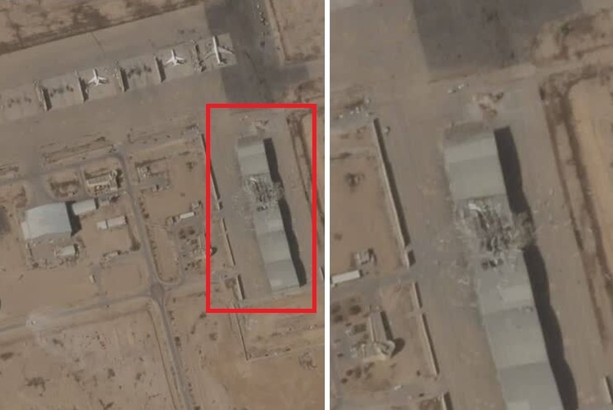 خبرگزاری آسوشیتدپرس بر اساس تصاویر ماهوارهای نوشت که وارد شدن آسیب به سقف آشیانه همراه با قطعات آوار پخش شده در یک ردیف از سازههای نزدیک باند فرودگاه دیده میشوند.