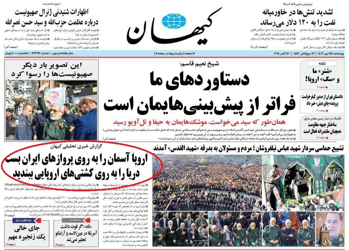 به گزارش جماران؛ روزنامه کیهان به مدیرمسئولی حسین شریعتمداری نوشت: اتحادیه اروپا با صدور بیانیهای از تحریم سه شرکت هواپیمایی ایران خبر داده و اعلام کرده است؛ «سه شرکت هواپیمایی ایرانایر، ماهانایر و هواپیمایی ساها، به علت آنکه موشکها و پهپادهای ساخت ایران را به روسیه منتقل کردهاند مورد تحریم این اتحادیه قرار گرفته و نمیتوانند به کشورهای اروپایی پرواز کنند»!