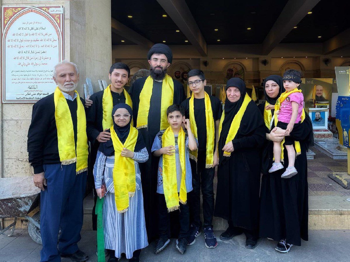این عکس، دیروز و فقط چند دقیقه بعد از تدفین شهید عزیز، دکتر رضا عواضه همسر لبنانیِ شهیدهی ایرانی خانم معصومه کرباسی در روضة الحوراء در ضاحیهی جنوبی بیروت ثبت شده.